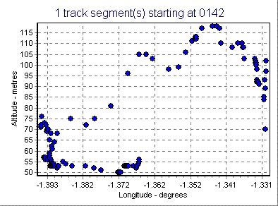This is an altitude profile and shows that there is an upper trace (see top right half of chart) and a lower trace (bottom left) in the source data. The data is entered into the Series in the order collected and I would like to see lines connecting the points.